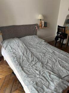 Chambre spacieuse, nombreux rangement : large placard (et miroir intérieur)+ 4 tiroirs sous le lit. Lit et matelas très ...