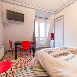 Chambre de 18 m2 environ, literie neuve 2 places. Placard avec étagère et penderie. Possibilité d'ajouter un bureau. Pas de volet ...