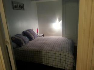 Chambre de 12 m2 avec un lit de 160x200 et draps fournis. Cheminée avec grand miroir, commode, bibliothèque, petit meuble roulant ...