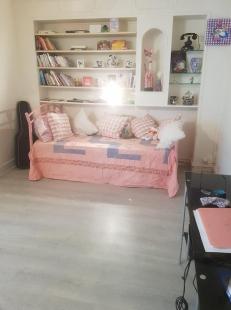 Chambre salon avec canapé convertible, espace de rangement (commode + armoire) grande bibliothèque
