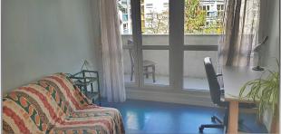 Chambre de 16 m² avec balcon privé de 5 mètres donnant sur cour jardiné . Armoire penderie étagère , canapé convertible , ...