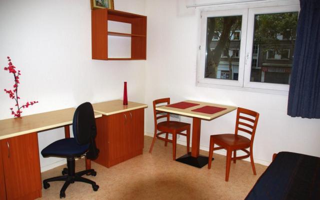 studio 15m2, entièrement meublé, parfait état comprenant : entrée avec placard chambre avec lit clic clac, petite table et 2 chaises, frigidaire/congelateur, télévision fixée au mur, commode ...