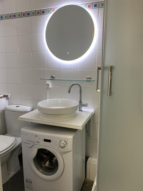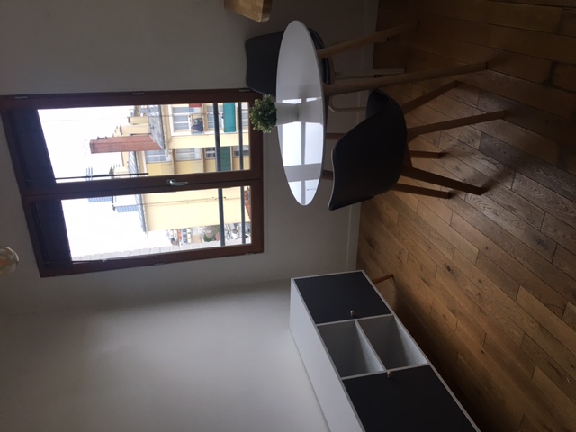 Loue Appartement meublé, Côté cours. Comprend entrée avec placard, petite cuisine, frigo, micro-ondes, lave linge, salle de bain-wc, chambre avec placard, lit, bureau, salon, balcon, canapé, table, ...