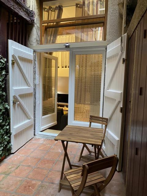 T2 de 36m2 Hyper centre, situé entre le capitole et la place de la daurade, meublé en rez de chaussée donnant sur petite terrasse semi privative, totalement équipé, cuisine ouverte (four, micro ondes, ...