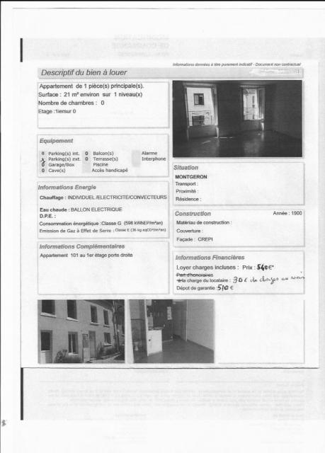 A LOUER UN STUDIO NEUF DE 21Me AU RDCH QUE DANS LE CENTRE DE MONTGERON 91230 DANS COUR PRIVEE LOYER 750EUROS PAR MOIS CHARGES COMPRISES PARKING .SITUE A 10MN DE LA GARE ET A 1/2 H DE LA GARE DE LYON ...