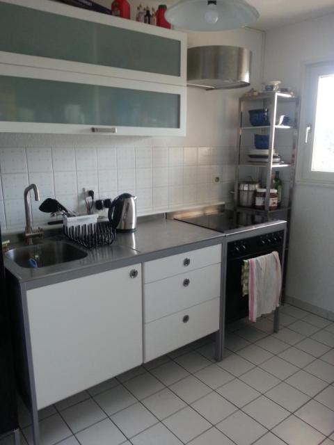 Cuisine équipée four, frigo, plaque, électroménager, vaisselle Salle de bain avec douche, lave-linge 2 chambres avec lit double dans chacune 3ième étage avec ascenseur entrée sécurisée code Gare ...