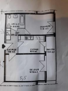 Une chambre de 11.19 m2 et un grand séjour transformé en 2ème chambre . Cuisine séparée.