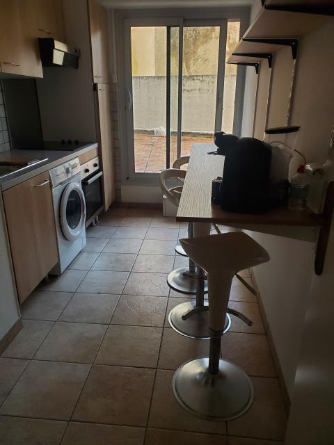 Beau F2 meublé centre ville, 1er étage avec ascenseur, local à vélos , grande terrasse 40m2 avec table et 4 chaises, accessible par le salon, la cuisine et la chambre.. Cuisine équipée :réfrigérateur ...
