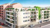 Dans une copropriété au calme et sécurisée, avec piscine, appartement deux pièces comprenant salon, coin cuisine, une chambre, salle de bains, 2 parkings privatifs