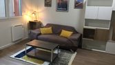 pièce de vie lumineuse avec salon et cuisine entièrement équipée