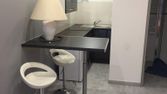 - Cuisine à l'américaine partiellement équipée : évier, 2 plaques vitro, hotte aspirante, frigo top, rangements