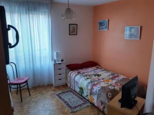 il s'agit d'une grand chambre, lit double, bureau, armoire trois portes à glaces, tv , commode, une jeune colocataire partage ...