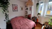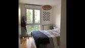 Chambre lumineux dans un logement de 87 m² à Villeurbanne, cadre agréable avec un jardin. 490 € CC mensuels.