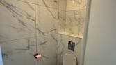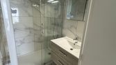 La salle d'eau comporte une baignoire, un meuble vasque avec miroir, un sèche-serviette, une machine à laver ainsi que des rangements. Les WC sont séparés pour plus de confort.
