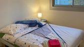 Les chambres sont meublées avec lits doubles, bureaux et placards de rangement.