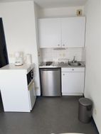 Cuisine avec plaque de cuisson, frigo top, petit congèl. vaisselle, rangement