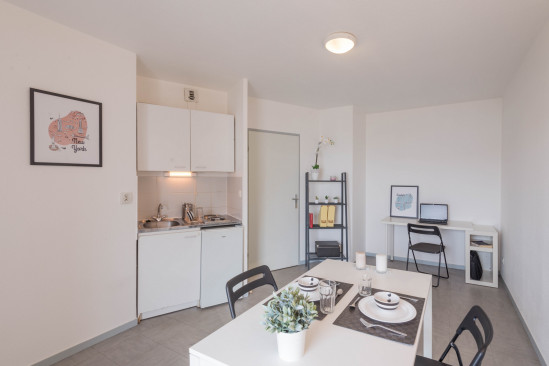 Studio moderne de 19 m²Résidence étudiante récente, ouverte en 2014, la re?sidence Studio 9 be?ne?ficie d’un emplacement ide?al dans le 9e?me arrondissement de Lyon. A proximite?, se trouve le campus universitaire Rene? Cassin (IDRAC, l'EM, l'IFAG). Seuls ou en colocation, tous les e?tudiants y trouveront leur bonheur : a? partir de 475€/mois,