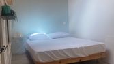 Cet appartement est composé d'une cuisine semi-équipée ouverte sur le séjour avec un balcon et d'une la salle de bain avec une baignoire.