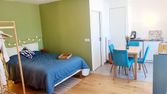 Logement tout équipé en électroménager, climatisation. Un canapé lit ouverture rapide de 120 cm. Un grand lit de 140 x 200 cm