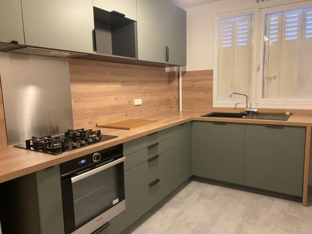 Cuisine avec frigo plaques placards Loue studio de 27 m², disponible pour un loyer de 650 € charges incluses.