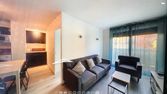 - Cuisine ouverte tout équipée (plaque induction, four, machine à café, lave-vaisselle, réfrigérateur)