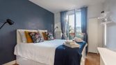 · 1 Chambre dispo immédiatement entièrement meublées avec parquet, matelas. Elle dispose d'un balcon privé, avec une télé déjà présente.