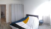 Chambre lit 1 place, placard/dressing. Salon : - Canapé - Table basse, Table à manger et chaises. Cuisine : - Plaque Induction/Four/Micro-onde - Grand Frigo - Lave-vaisselle, Machine à café, Vaisselles. Salle de bain Lave-linge.