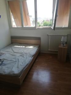 Vous avez à disposition un lit, une armoire, une table de chevet et une lampe de chevet
