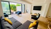 maison de ville de 55 m2 avec jardin prive+ balcon 1 chambre 1 double salon 1 cuisine equipe , salle de bain avec beignoire pas de charge seul eau et edf