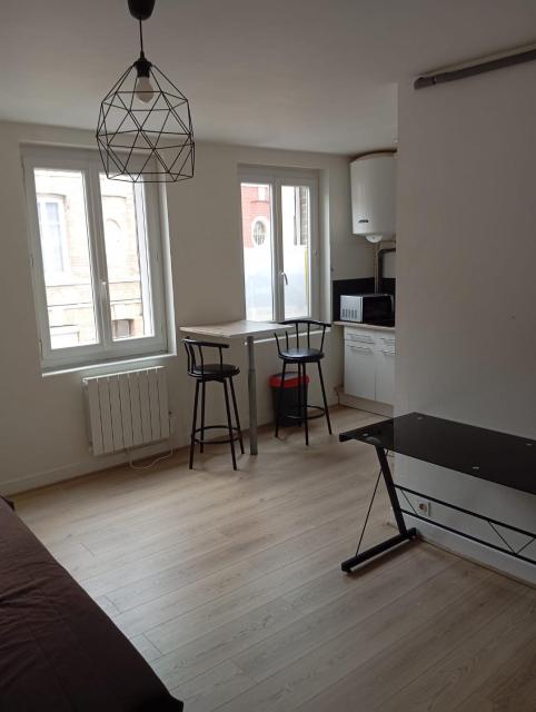 loue studio meublé 700 m de la gare routière et SNCF très lumineux comprenant : - espace cuisine avec kitchenette équipée, - séjour avec lit, table de salon, bibliothèque,table de cuisine 2 ...