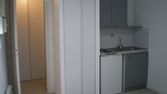 Studio composé d'une pièce principale comprenant un grand rangement, un coin kitchenette avec évier, réfrigérateur, plaques électriques.