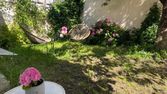 Un grand jardin avec barbecue, donnant sur le parc départemental avec promenade, vue sur Paris. Peu de vis à vis, l'accès se fait par portail, sur le parking donnant sur la terrasse avant.