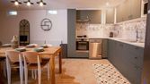 Au rdc : entrée sur une grande pièce de vie (60m²) cuisine entièrement équipée avec îlot central-bar/salle à manger, ouvert sur une véranda de 30m² (avec ces avantages, très lumineux directement dans un bain de verdure sur le jardin et ses inconvénients, la température à gérer avec la clim/chauffage mais les fenêtres s'ouvrent de partout !), coin nuit avec trois chambres, salle de bain avec baignoire et WC et un WC indépendant.