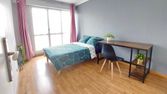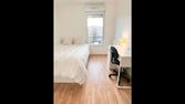 Chambre tres lumineuse, salle d'eau privée avec toilette douche lavabo seche serviette, acces cuisine : usage plaque induction et frigo, buanderie machines laver et seche linge, wifi