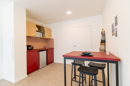 Cette nouvelle résidence offre des studios entièrement meublés et équipés, avec un design moderne et une connexion internet incluse.
