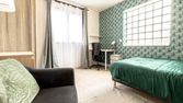Chaque chambre dispose d'un lit, bureau, chevet et dressing.