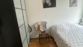Chambre spacieuse avec bureau et matériel informatique, calme et bien éclairée. Disposant d'un lit double, elle vous permettra d'être à l'aise et en toute sérénité. L'appartement de 100m2 situé au dessus d'un supermarché, dispose d'une salle de bain privative et d'un grand salon avec cuisine équipée donnant sur une terrasse ensoleillée.