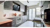 Il y a une cuisine équipée, des canapés, une télévision et un lave linge.