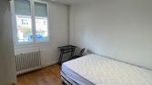 Le logement dispose de 3 chambres (lit, table de chevet, bureau/chaise, rangement encastré, literie) avec chacune une clé et prise RJ45.