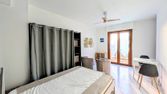 L'appartement se compose d'une entrée avec rangement, d'un séjour ouvert sur une terrasse et un jardin, une salle de douche, une cuisine équipée et aménagée et un W.C indépendant. Climatisation. Parking collectif dans la résidence.