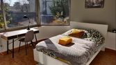- Lit, literie, rangements, bureau et chaise
