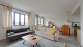 Cet appartement en duplex dispose d'une belle pièce de vie, d'une cuisine non aménagée et d'un cellier.