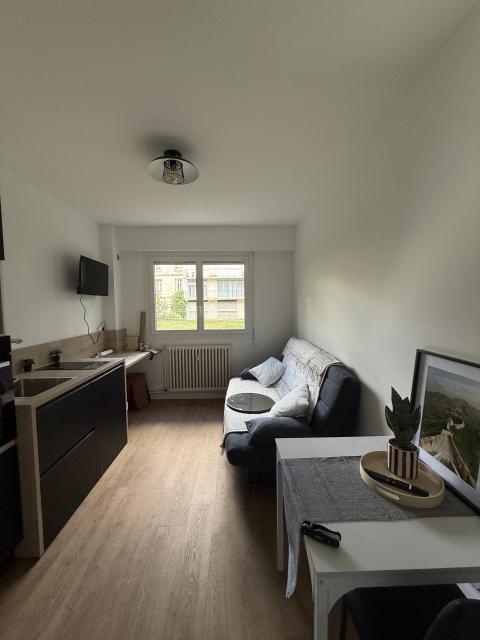 Studio avec grande fenêtre vue panoramique sur l'hyper centre-ville , proche gare et bus - kitchenette, - salle de bain avec baignoire, - cabinet de toilette, - lit superposé, -canapé lit deux ...