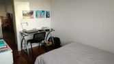 Grande chambre agréable d'environ 15 m2 au 1er étage, à personnaliser. juste des étagères + rangement encastré. Parquet. Vue sur jardin et rue peu passante. Sdb et wc au rez-de-chaussée.