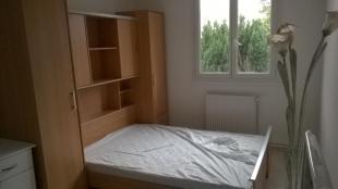 Chambre dans pavillon à louer et équipée d'un lit de 2 Places avec placards, un canapé, un frigo, un microonde, une téléviseur, ...