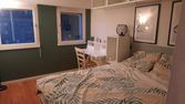 Chambre avec grand bureau (1m80) et rangement pour étude.