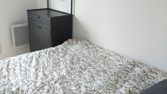 Chambre privée meublée avec lit 140x190, placards sous rampant, une commode, un chevet