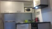 Versailles quartier saint louis, 600 m RER C rive gauche Studio 33m2 au sol et 14m2 en loi carrez dans immeuble de construction neuve année 2000, séjour avec beaux carrelage sols, Kitchenette (frigo plaques chauffantes évier et meuble sous évier) peinture blanche murs, exposition Nord Sud donnant rue et cour, salle de bains avec baignoire, vasque sur meuble, wc, VMC (ventilation) chauffage électrique individuel